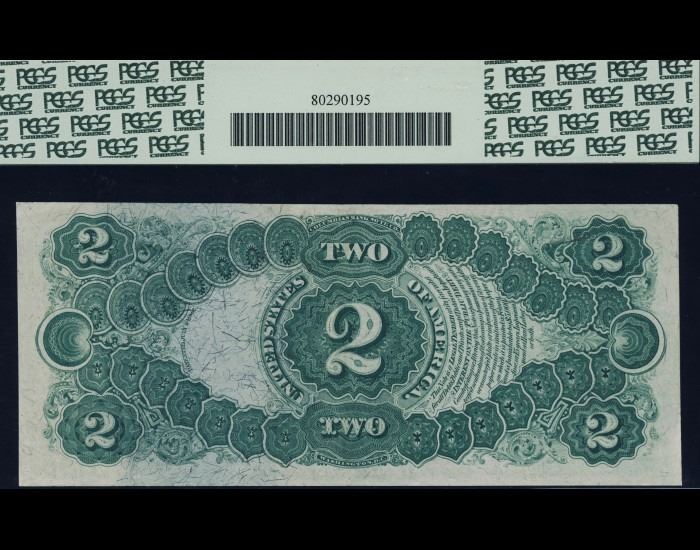 One 1874 $2 Legal Tender Note PCGS 53.