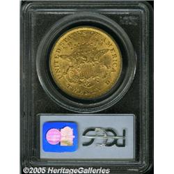 <B>1874 $20 AU58 PCGS.</B></I> A somewhat scarcer Type Two double eagle. Sharply struck with nearly full luster and rich green-gold and orange coloration. A scuffy obverse limits the grade. Population: 65 in 58, 84 finer (2/05).