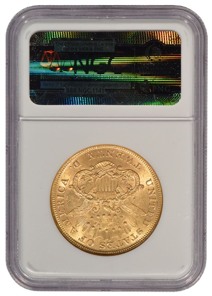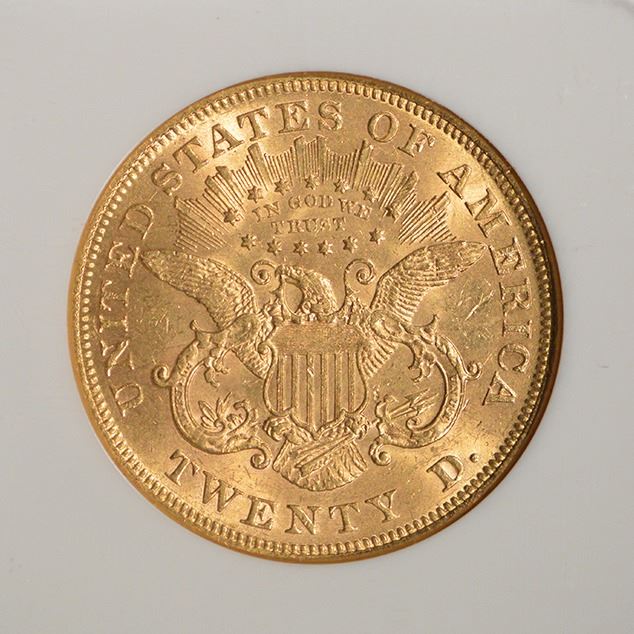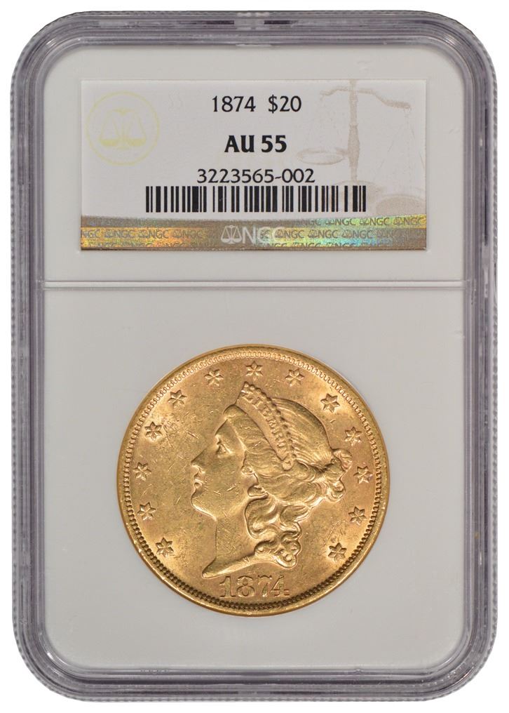 One 1874 $20 Liberty Head Double Eagle Gold Coin NGC AU55.