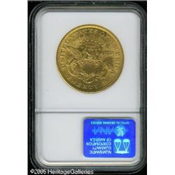 <B>1874 $20 MS61 NGC Eagle Collection.</B></I> High end for the grade with several moderately sized abrasions on Liberty's cheek that limit the grade. The mint luster is frosted beneath attractive reddish-golden color. An exceedingly difficult piece to locate in finer grades.<BR><I>Ex: 2002 FUN Signature Sale (Heritage 1/02), lot 4065.</B></I><BR><I>From The Richard J. Chouinard Collection of United States Coins, Part Two.</B></I> Lot:9084