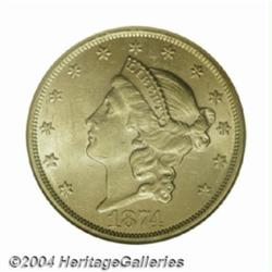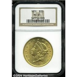<table><tbody><tr><td><table> <TR><TD width="100%"><TABLE cellSpacing=1 cellPadding=3 width="100%" border=0><TBODY><TR><TD width="100%" bgColor=#79735c><FONT face=arial color=#ffffff size=3><B>Description</B> </FONT></TD></TR><TR><TD width="100%" bgColor=#ffffff><FONT face=arial size=2><B>1874 $20 MS61 NGC.</B></I> A date that is often incorrectly assumed to be a common Type Two issue, but is actually very scarce in Mint State. Highly lustrous and typically marked, for the grade, with more pronounced abrasions on the obverse. Population: 93 in 61, 15 finer (11/03).<BR><I>From a Magnificent Collection of Double Eagles.</B></I> </FONT></TD></TR></TBODY></TABLE></TD></TR></TBODY></TABLE><BR><A name=PricesRealized></A><TABLE cellSpacing=0 cellPadding=0 width="100%" bgColor=#000000 border=0><TBODY><TR><TD width="100%"><TABLE cellSpacing=1 cellPadding=3 width="100%" border=0><TBODY><TR><TD width="100%" bgColor=#79735c><A name=PR><FONT face=arial color=#ffffff size=3><B>Previous Prices from Heritage Auctions</B> </FONT></A></TD></TR><TR><TD bgColor=#f6f6ed><TABLE cellSpacing=0 cellPadding=0 width="100%" border=1><TBODY><TR><TD align=middle width="33%"><B>Date</B></TD><TD align=middle width="33%"><B>Service</B></TD><TD align=middle width="33%"><B>Price</B></TD></TR><TR bgColor=whitesmoke><TD width="33%"><B>06/08/2002</B></TD><TD width="33%">PCGS</TD><TD width="33%">$2,702.50</TD></TR><TR bgColor=whitesmoke><TD width="33%"><B>01/12/2002</B></TD><TD width="33%">NGC</TD><TD width="33%">$4,427.50</TD></TR><TR bgColor=whitesmoke><TD width="33%"><B>05/31/2001</B></TD><TD width="33%">NGC</TD><TD width="33%">$2,817.50</TD></TR></TBODY></TABLE></TD></TR><TR><TD bgColor=#ffffff><FONT face=arial size=1 ?>PLEASE NOTE: All prices realized reflect the final hammer price PLUS the buyer's premium in auctions that charge a buyer's premium. Each item has a notation at the top of the listing indicating whether that lot included a buyer's premium. Example: A item that sells with a final hammer price of $100 and a 20% buyer's premium will display with a price realized of $120. All information listed is intended to be as accurate as possible, but errors are possible. Please use this guide carefully and inform us of any inaccuracies. </FONT></TD></TR></TBODY></TABLE></TD></TR></TBODY></TABLE><BR><TABLE cellSpacing=0 cellPadding=0 width="100%" bgColor=#000000 border=0><TBODY><TR><TD width="100%"><TABLE cellSpacing=1 cellPadding=3 width="100%" border=0><TBODY><TR><TD width="100%" bgColor=#79735c colSpan=6><FONT face=arial color=#ffffff size=3><B>Price Guide*</B> </FONT></TD></TR><TR bgColor=#f6f6ed><TD align=middle><B>Grade</B> </TD><TD align=middle><B>Coin World<BR>(Trends)</B> </TD><TD align=middle><B>Numismedia<BR>Retail</B> </TD><TD align=middle><B>Numismedia<BR>Wholesale</B> </TD><TD align=middle><B>Coin<BR>Universe</B> </TD><TD align=middle><B>Heritage<BR>Value Index</B> </TD></TR><TR bgColor=#ffffff><TD align=middle>60</TD><TD align=right>$1,500.00</TD><TD align=right>---</TD><TD align=right>$1,200.00</TD><TD align=right>$1,250.00</TD><TD align=right>$936.19</TD></TR><TR style="FONT-WEIGHT: bold" bgColor=#cccfdd><TD align=middle>61</TD><TD align=right>---</TD><TD align=right>---</TD><TD align=right>$2,775.00</TD><TD align=right>$3,250.00</TD><TD align=right>$3,198.25</TD></TR><TR bgColor=#ffffff><TD align=middle>62</TD><TD align=right>$9,000.00</TD><TD align=right>---</TD><TD align=right>$6,875.00</TD><TD align=right>$6,950.00</TD><TD align=right>$6,031.67</TD></TR><TR bgColor=#ffffff><TD colSpan=6><FONT size=1>*All information listed is intended to be as accurate as possible, but errors are possible. No item may be returned or refused based on this information which is provided as a service to our customers. You should contact each pricing source directly to determine the accuracy of this information. </FONT></TD></TR></TBODY></TABLE></TD></TR></TBODY></TABLE><BR><TABLE cellSpacing=0 cellPadding=0 width="100%" bgColor=#000000 border=0><TBODY><TR><TD width="100%"><TABLE cellSpacing=1 cellPadding=3 width="100%" border=0><TBODY><TR><TD width="100%" bgColor=#79735c><FONT face=arial color=#ffffff size=3><B>Population Guide</B> </FONT></TD></TR><TR bgColor=#ffffff><TD align=middle><!-- Begin Output of Population Grid--><TABLE cellSpacing=0 cellPadding=0 width="100%" border=0><TBODY><TR><TD vAlign=center><TABLE cellSpacing=0 width="100%" border=1 cellsadding="3"><TBODY><TR><TD vAlign=center><TABLE cellSpacing=0 cellPadding=3 width="100%" border=1><TBODY><TR><TD vAlign=center align=middle bgColor=#f0f1e8 colSpan=2 <CENTER><FONT face=Arial size=2><B>PCGS Pop </B></FONT><CENTER></CENTER></TD><TD vAlign=center align=middle bgColor=#f0f1e8 colSpan=2><CENTER><FONT face=Arial size=2><B>NGC Pop</B></CENTER></FONT></TD></TR><TR><TD vAlign=center><FONT face=Arial size=2>(61)</FONT> </TD><TD vAlign=center align=right><FONT face=Arial size=2>25</FONT> </TD><TD vAlign=center><FONT face=Arial size=2>(61)</FONT> </TD><TD vAlign=center align=right><FONT face=Arial size=2>93</FONT> </TD></TR><TR><TD vAlign=center><FONT face=Arial size=2>(>61)</FONT> </TD><TD vAlign=center align=right><FONT face=Arial size=2>11</FONT> </TD><TD vAlign=center><FONT face=Arial size=2>(>61)</FONT> </TD><TD vAlign=center align=right><FONT face=Arial size=2>15</FONT> </TD></TR></TBODY></TABLE></TD></TR></TBODY></TABLE></TD></TR></TBODY></TABLE><!-- End Output of Population Grid--></TD></TR></TBODY></TABLE></TD></TR></TBODY></TABLE><BR><TABLE cellSpacing=0 cellPadding=0 width="100%" bgColor=#000000 border=0><TBODY><TR> <font color='#000000'><span style='background-color: #FFFFFF'><td bgcolor='#FFFFFE'> Important notice: Heritage usually auctions material at the rate of 200-250 lots per hour. On some occasions eBay Live bid software or the Internet may not be able to keep up with the pace of the auction. We recommend placing a realistic absentee bid now as insurance to avoid disappointment. Occasionally the auctioneer may eliminate or reject an eBay Live bid, a