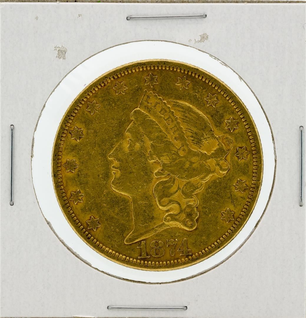 One 1874 $20 XF Liberty Head Double Eagle Gold Coin.