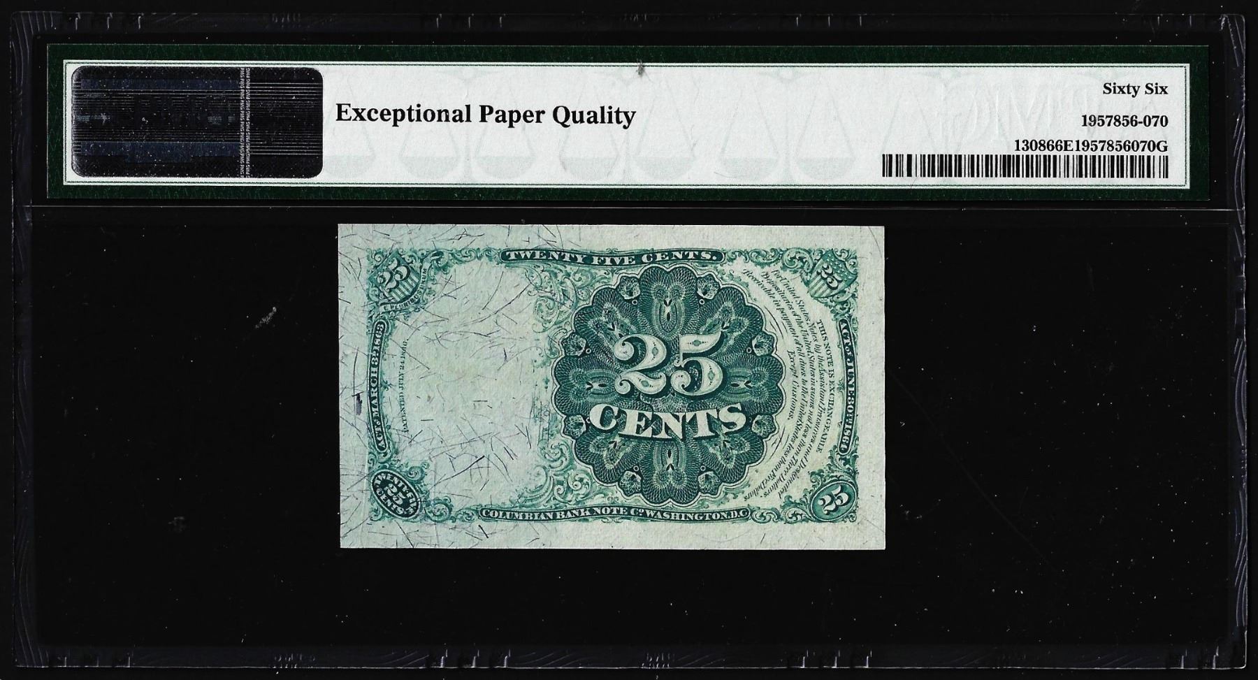 1874 25 Cent Fifth Issue Fractional Currency Note Fr.1308 PMG Choice Uncirculated 66EPQ
