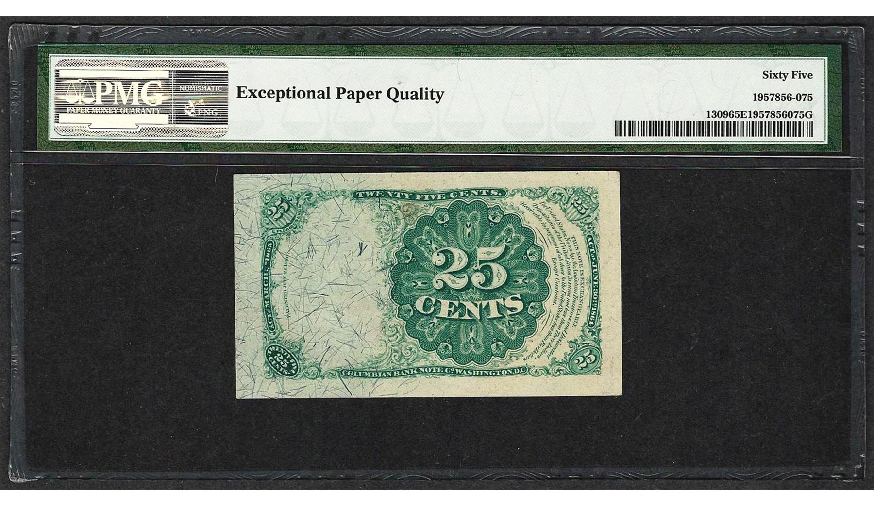 One 1874 25 Cents Fifth Issue Fractional Currency Note Fr.1309 PMG Gem Uncirculated 65EPQ. PMG Certified.