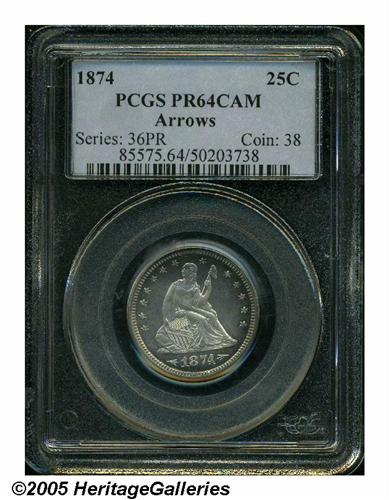1874 25C Arrows PR64 Cameo PCGS. A lovely, well c