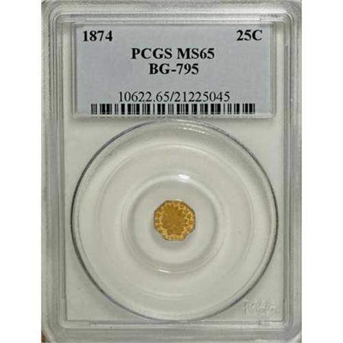 1874 25C Indian Octagonal 25 Cents, BG-795, R.3, MS65