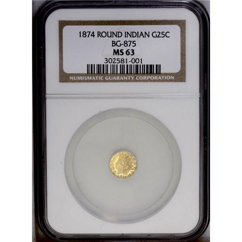 1874 25C Indian Round 25 Cents, BG-875, High R.4, MS63