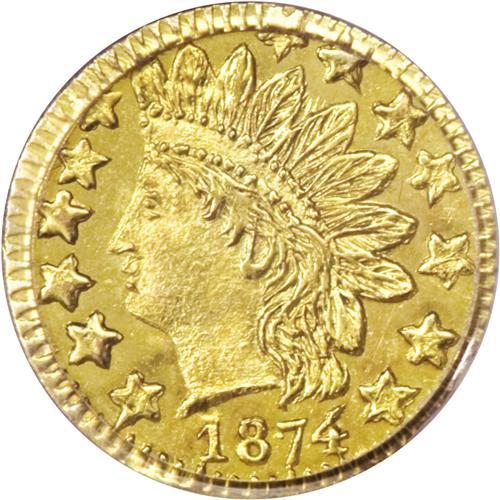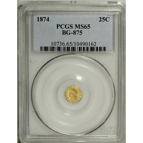 1874 25C Indian Round 25 Cents, BG-875, High R.4, MS65