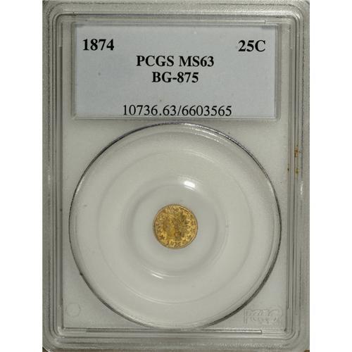 1874 25C Indian Round 25 Cents, BG-875, High R.4, MS