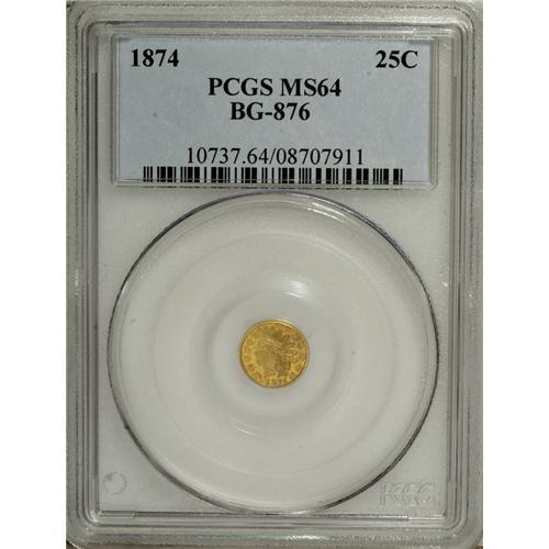 1874 25C Indian Round 25 Cents, BG-876, Low R.4, MS6