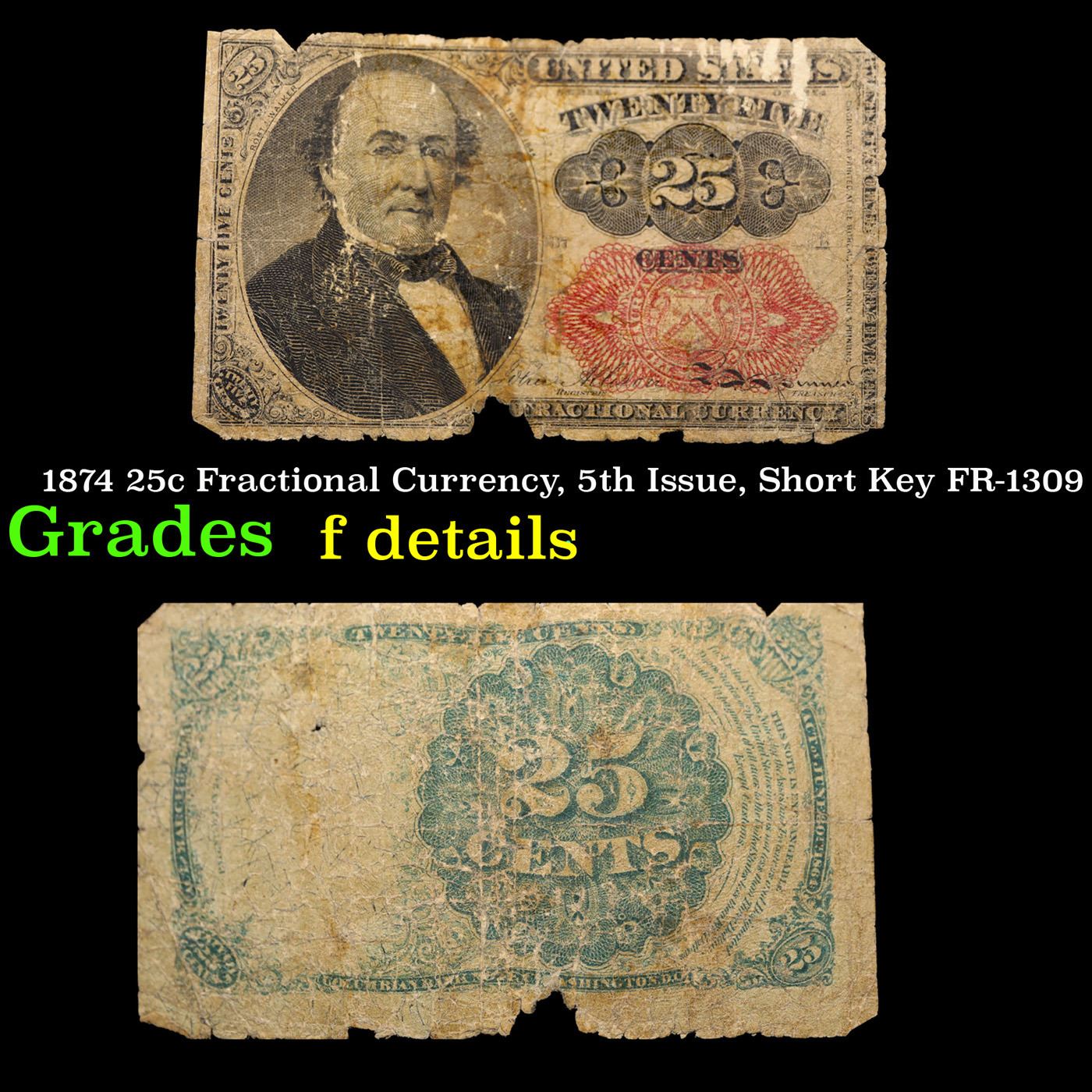 1874 25c Fractional Currency, 5th Issue, Short Key FR-1309 Grades f details