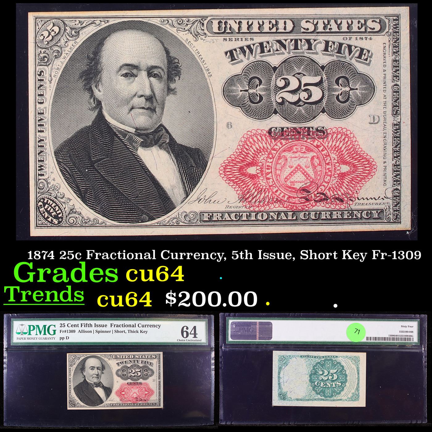 1874 25c Fractional Currency, 5th Issue, Short Key Fr-1309 Graded cu64 By PMG