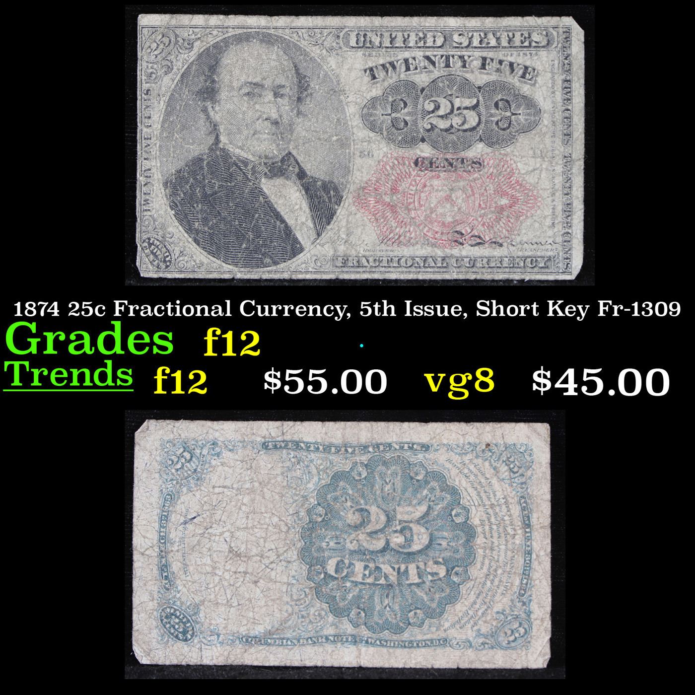 1874 25c Fractional Currency, 5th Issue, Short Key Fr-1309 Grades f, fine