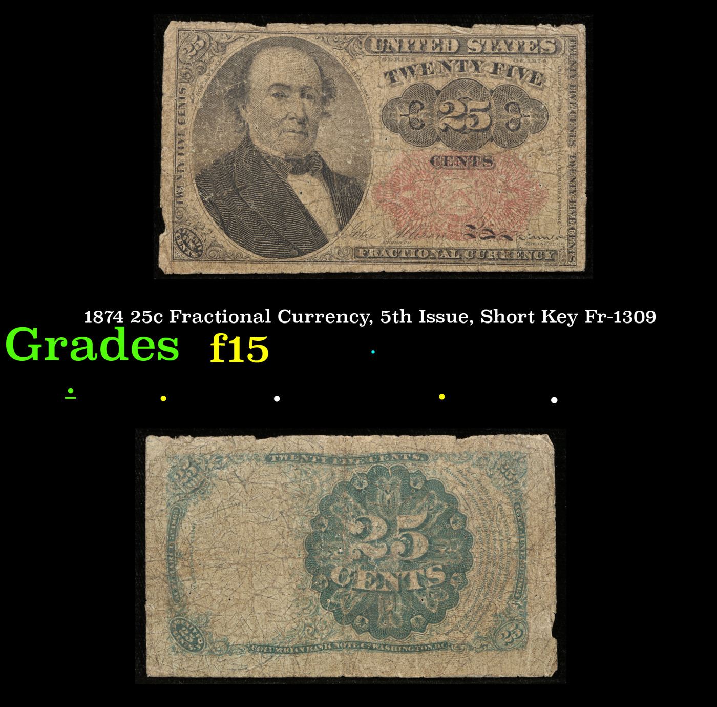 1874 25c Fractional Currency, 5th Issue, Short Key Fr-1309 Grades f+