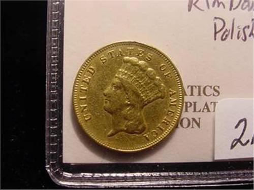 1874 $3.00 Princess Gold Coin VF (Rim Damage - Polished)