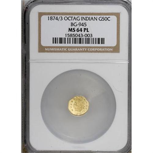 <B>1874/3 50C BG-945 MS64 Prooflike NGC.</B></I> NGC Census: (0/0). PCGS Population (0/0). (#710803)<BR><BR><b>Shipping:</b> Coins & Currency (<a target="_blank" href="http://www.heritageauctions.com/common/shipping.php">view shipping information</a>)