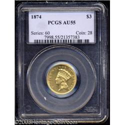 <table><tr><td><TABLE cellSpacing=0 cellPadding=0 width="100%" bgColor=#000000 border=0><TBODY> <TR><TD width="100%"><TABLE cellSpacing=1 cellPadding=3 width="100%" border=0><TBODY><TR><TD width="100%" bgColor=#79735c><FONT face=arial color=#ffffff size=3><B>Description</B> </FONT></TD></TR><TR><TD width="100%" bgColor=#ffffff><FONT face=arial size=2><B>1874 $3 AU55 PCGS.</B></I> Flashy and bright with just a trace of wear and scattered, small abrasions. <BR><I>From The New Millennium Collection.</B></I> </FONT></TD></TR></TBODY></TABLE></TD></TR></TBODY></TABLE><BR><A name=PricesRealized></A><TABLE cellSpacing=0 cellPadding=0 width="100%" bgColor=#000000 border=0><TBODY><TR><TD width="100%"><TABLE cellSpacing=1 cellPadding=3 width="100%" border=0><TBODY><TR><TD width="100%" bgColor=#79735c><A name=PR><FONT face=arial color=#ffffff size=3><B>Previous Prices from Heritage Auctions</B> </FONT></A></TD></TR><TR><TD bgColor=#f6f6ed><TABLE cellSpacing=0 cellPadding=0 width="100%" border=1><TBODY><TR><TD align=middle width="33%"><B>Date</B></TD><TD align=middle width="33%"><B>Service</B></TD><TD align=middle width="33%"><B>Price</B></TD></TR><TR bgColor=whitesmoke><TD width="33%"><B>02/18/2003</B></TD><TD width="33%">NGC</TD><TD width="33%">$948.75</TD></TR><TR bgColor=whitesmoke><TD width="33%"><B>06/04/2002</B></TD><TD width="33%">NGC</TD><TD width="33%">$862.50</TD></TR><TR bgColor=whitesmoke><TD width="33%"><B>10/24/2000</B></TD><TD width="33%">NGC</TD><TD width="33%">$725.00</TD></TR><TR bgColor=whitesmoke><TD width="33%"><B>06/10/2000</B></TD><TD width="33%">PCGS</TD><TD width="33%">$816.50</TD></TR><TR bgColor=whitesmoke><TD width="33%"><B>04/24/1999</B></TD><TD width="33%">PCGS</TD><TD width="33%">$781.00</TD></TR><TR bgColor=whitesmoke><TD width="33%"><B>01/11/1997</B></TD><TD width="33%">PCGS</TD><TD width="33%">$920.00</TD></TR><TR bgColor=whitesmoke><TD width="33%"><B>04/28/1995</B></TD><TD width="33%">PCGS</TD><TD width="33%">$801.90</TD></TR><TR bgColor=whitesmoke><TD width="33%"><B>08/01/1999</B></TD><TD width="33%">PCGS</TD><TD width="33%">$1,006.00</TD></TR></TBODY></TABLE></TD></TR><TR><TD bgColor=#ffffff><FONT face=arial size=1 ?>PLEASE NOTE: All prices realized reflect the final hammer price PLUS the buyer's premium in auctions that charge a buyer's premium. Each item has a notation at the top of the listing indicating whether that lot included a buyer's premium. Example: A item that sells with a final hammer price of $100 and a 20% buyer's premium will display with a price realized of $120. All information listed is intended to be as accurate as possible, but errors are possible. Please use this guide carefully and inform us of any inaccuracies. </FONT></TD></TR></TBODY></TABLE></TD></TR></TBODY></TABLE><BR><TABLE cellSpacing=0 cellPadding=0 width="100%" bgColor=#000000 border=0><TBODY><TR><TD width="100%"><TABLE cellSpacing=1 cellPadding=3 width="100%" border=0><TBODY><TR><TD width="100%" bgColor=#79735c colSpan=6><FONT face=arial color=#ffffff size=3><B>Price Guide*</B> </FONT></TD></TR><TR bgColor=#f6f6ed><TD align=middle><B>Grade</B> </TD><TD align=middle><B>Coin World<BR>(Trends)</B> </TD><TD align=middle><B>Numismedia<BR>Retail</B> </TD><TD align=middle><B>Numismedia<BR>Wholesale</B> </TD><TD align=middle><B>Coin<BR>Universe</B> </TD><TD align=middle><B>Heritage<BR>Value Index</B> </TD></TR><TR bgColor=#ffffff><TD align=middle>53</TD><TD align=right>---</TD><TD align=right>---</TD><TD align=right>$925.00</TD><TD align=right>---</TD><TD align=right>$942.80</TD></TR><TR style="FONT-WEIGHT: bold" bgColor=#cccfdd><TD align=middle>55</TD><TD align=right>$1,800.00</TD><TD align=right>---</TD><TD align=right>$965.00</TD><TD align=right>$1,100.00</TD><TD align=right>$1,037.19</TD></TR><TR bgColor=#ffffff><TD align=middle>58</TD><TD align=right>---</TD><TD align=right>---</TD><TD align=right>$1,075.00</TD><TD align=right>---</TD><TD align=right>$1,285.63</TD></TR><TR bgColor=#ffffff><TD colSpan=6><FONT size=1>*All information listed is intended to be as accurate as possible, but errors are possible. No item may be returned or refused based on this information which is provided as a service to our customers. You should contact each pricing source directly to determine the accuracy of this information. </FONT></TD></TR></TBODY></TABLE></TD></TR></TBODY></TABLE><BR><TABLE cellSpacing=0 cellPadding=0 width="100%" bgColor=#000000 border=0><TBODY><TR><TD width="100%"><TABLE cellSpacing=1 cellPadding=3 width="100%" border=0><TBODY><TR><TD width="100%" bgColor=#79735c><FONT face=arial color=#ffffff size=3><B>Population Guide</B> </FONT></TD></TR><TR bgColor=#ffffff><TD align=middle><!-- Begin Output of Population Grid--><TABLE cellSpacing=0 cellPadding=0 width="100%" border=0><TBODY><TR><TD vAlign=center><TABLE cellSpacing=0 width="100%" border=1 cellsadding="3"><TBODY><TR><TD vAlign=center><TABLE cellSpacing=0 cellPadding=3 width="100%" border=1><TBODY><TR><TD vAlign=center align=middle bgColor=#f0f1e8 colSpan=2 <CENTER><FONT face=Arial size=2><B>PCGS Pop </B></FONT><CENTER></CENTER></TD><TD vAlign=center align=middle bgColor=#f0f1e8 colSpan=2><CENTER><FONT face=Arial size=2><B>NGC Pop</B></CENTER></FONT></TD></TR><TR><TD vAlign=center><FONT face=Arial size=2>(55)</FONT> </TD><TD vAlign=center align=right><FONT face=Arial size=2>258</FONT> </TD><TD vAlign=center><FONT face=Arial size=2>(55)</FONT> </TD><TD vAlign=center align=right><FONT face=Arial size=2>154</FONT> </TD></TR><TR><TD vAlign=center><FONT face=Arial size=2>(>55)</FONT> </TD><TD vAlign=center align=right><FONT face=Arial size=2>727</FONT> </TD><TD vAlign=center><FONT face=Arial size=2>(>55)</FONT> </TD><TD vAlign=center align=right><FONT face=Arial size=2>816</FONT> </TD></TR></TBODY></TABLE></TD></TR></TBODY></TABLE></TD></TR></TBODY></TABLE><!-- End Output of Population Grid--></TD></TR></TBODY></TABLE></TD></TR></TBODY></TABLE><BR><TABLE cellSpacing=0 cellPadding=0 width="100%" bgColor=#000000 border=0><TBODY><TR> I