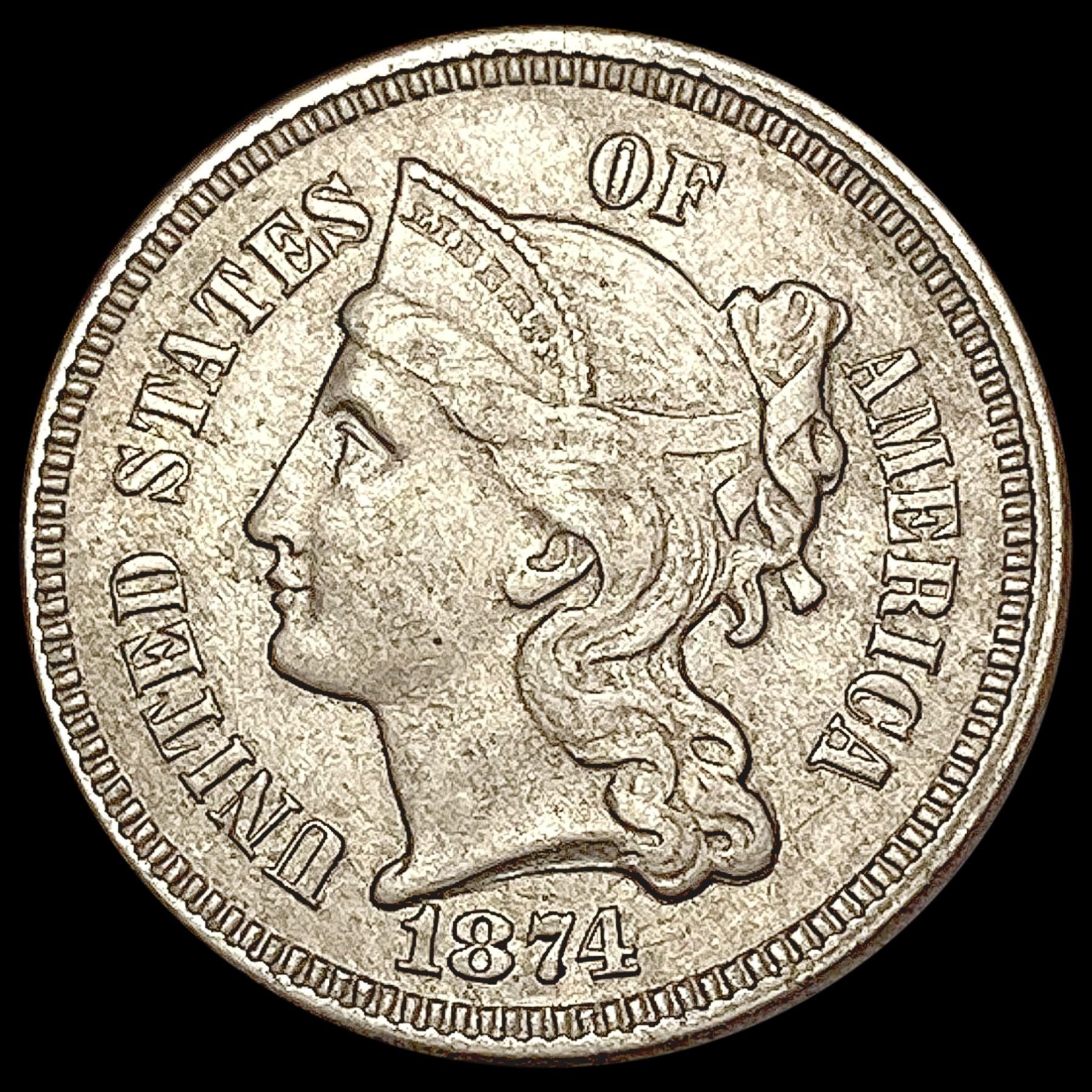 1874 3 Cent Nickel CLOSELY UNCIRCULATED