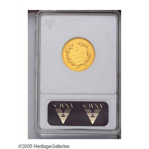 <B>1874<$3>--Cleaned--ANACS. XF45 Details.</B></I> Bright yellow-gold surfaces are moderately hairlined. A few light marks are scattered about, and the design elements display fairly nice definition.