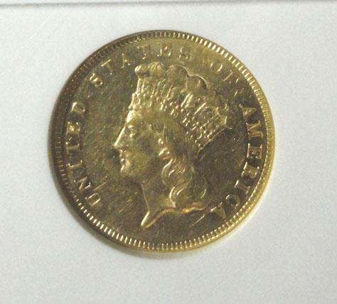 1874 $3 GOLD ANACS55