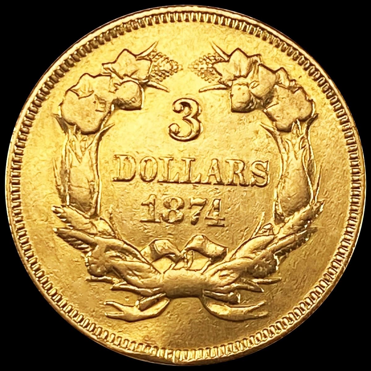 1874 $3 Gold Piece ABOUT UNCIRCULATED