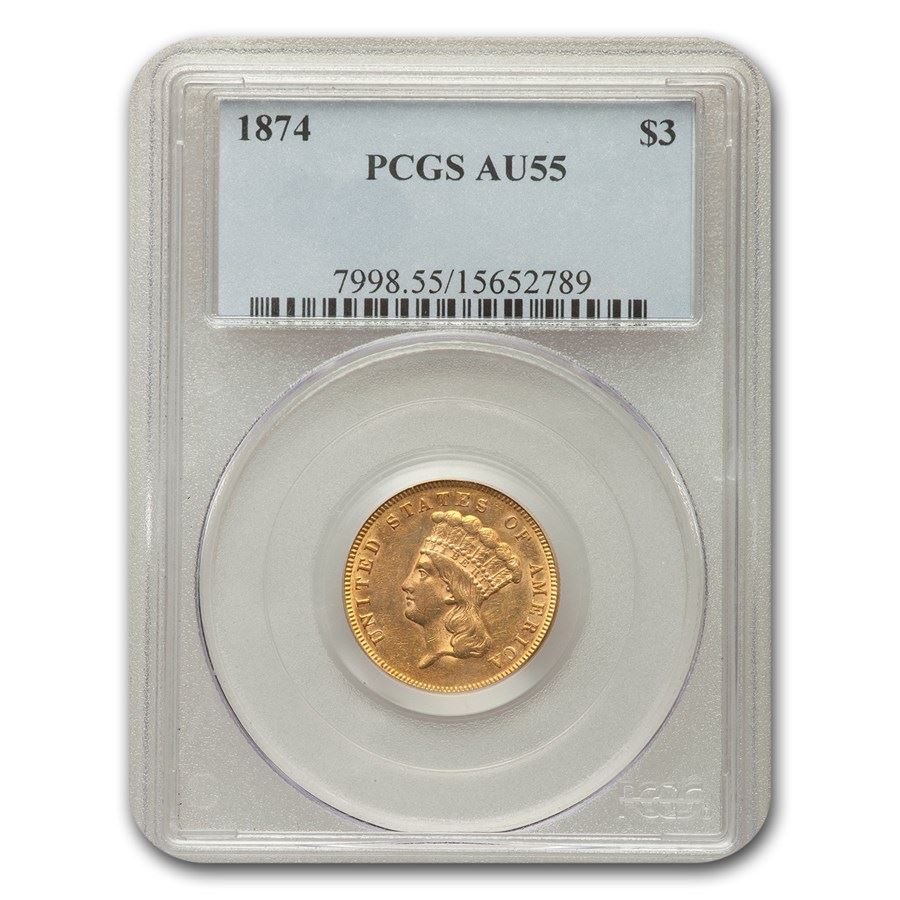 1874 $3 Gold Princess AU-55 PCGS