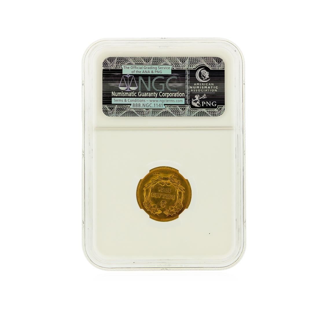 One 1874 $3 Indian Princess Head Gold Coin NGC Graded MS61. NGC Certified.