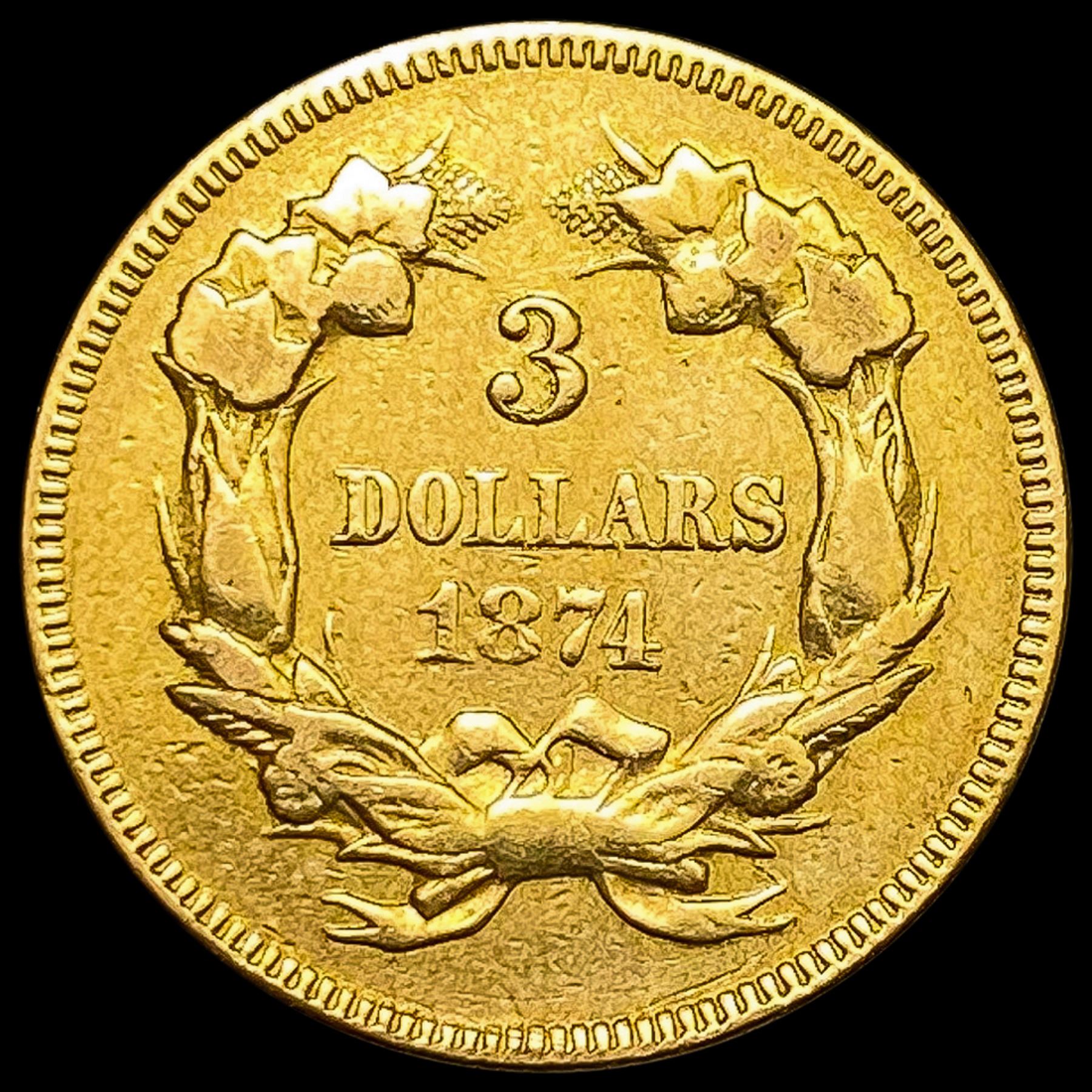 1874 $3 Indian Princess Head Gold Dollar NEARLY UNCIRCULATED