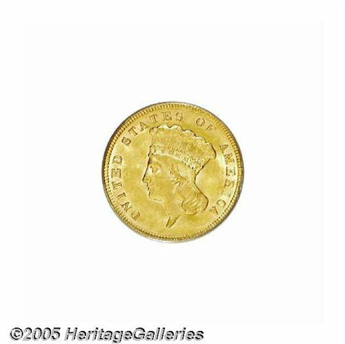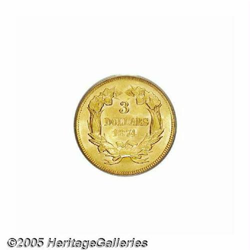 1874 $3 MS62 PCGS. A bit softly struck, the surfa