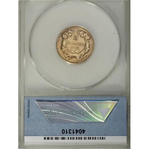 <B>1874 $3 --Ex-Jewelry, Polished--ANACS XF40 Details.</B></I> NGC Census: (20/2009). PCGS Population (40/1592). Mintage: 41,820. Numismedia Wsl. Price for NGC/PCGS coin in XF40: $950. (#7998)<BR><BR><B>Coin Engraver:</B> James B. Longacre<BR><BR><b>Shipping:</b> Coins & Currency (<a target="_blank" href="http://www.heritageauctions.com/common/shipping.php">view shipping information</a>)