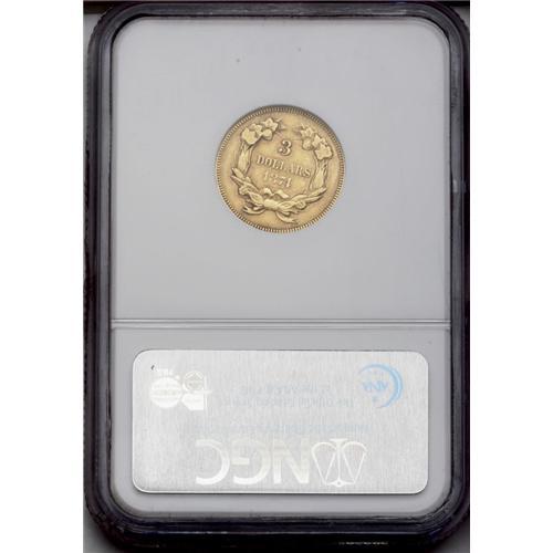 1874 $3 XF40 NGC. An evenly worn example of this commo 1874[$3] XF40 NGC.