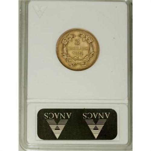 <B>1874 $3 XF45 ANACS.</B></I> Liberty's hair and eyebrow display wear, but subtle luster emerges from design crevices. Void of consequential marks. An affordable type representative.<BR><BR><B>Coin Engraver:</B> James B. Longacre<BR><BR><b>Shipping:</b> Coins & Currency (<a target="_blank" href="http://www.heritageauctions.com/common/shipping.php">view shipping information</a>)