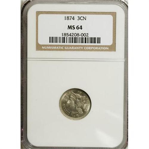1874 3CN MS64 NGC. NGC Census: (50/20). PCGS Popul