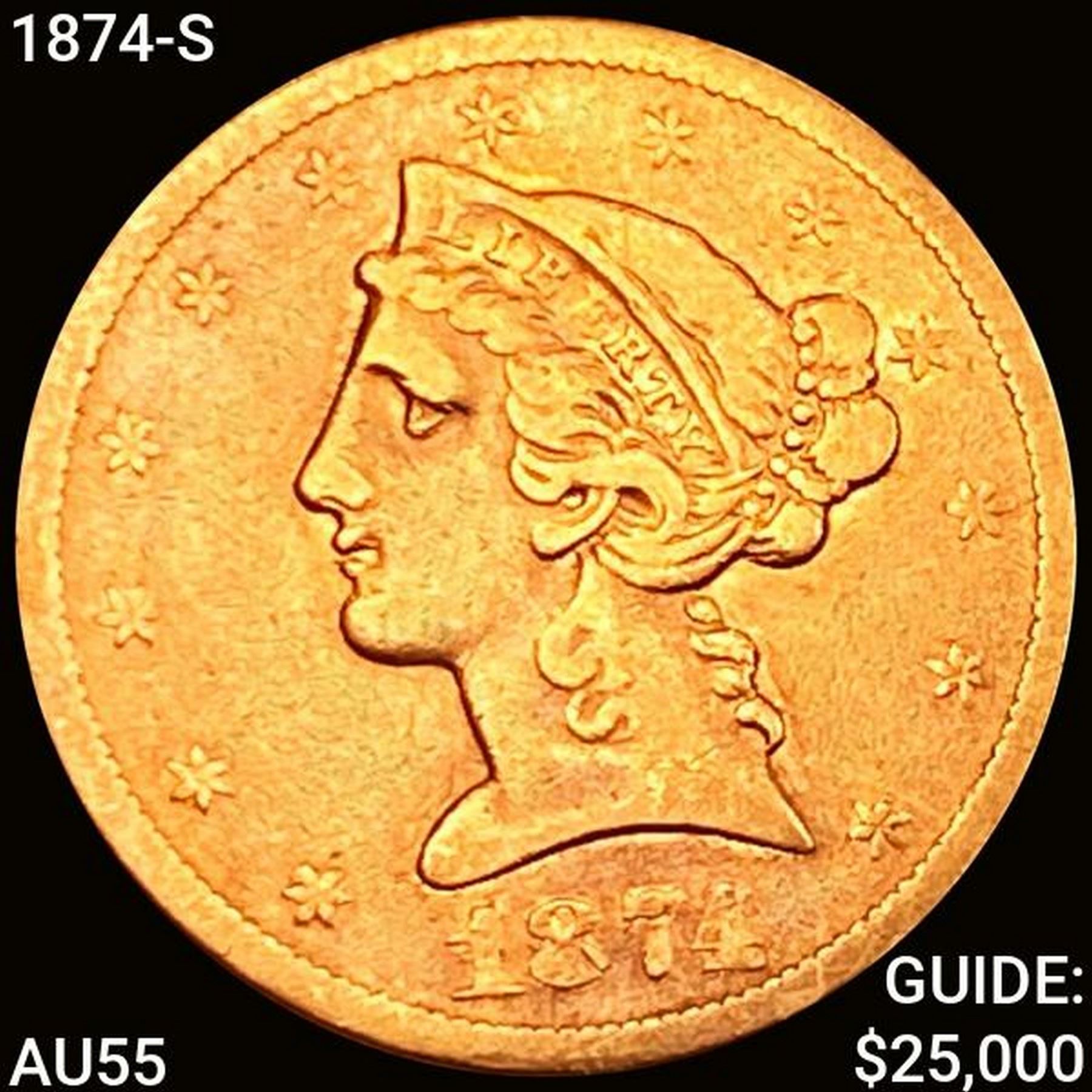 1874 $5 Gold Half Eagle CLOSELY UNCIRCULATED