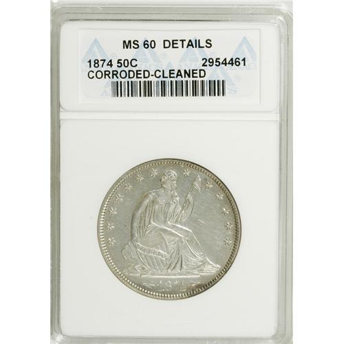 1874 50C Arrows--Cleaned, Corroded--ANACS. MS60 Deta