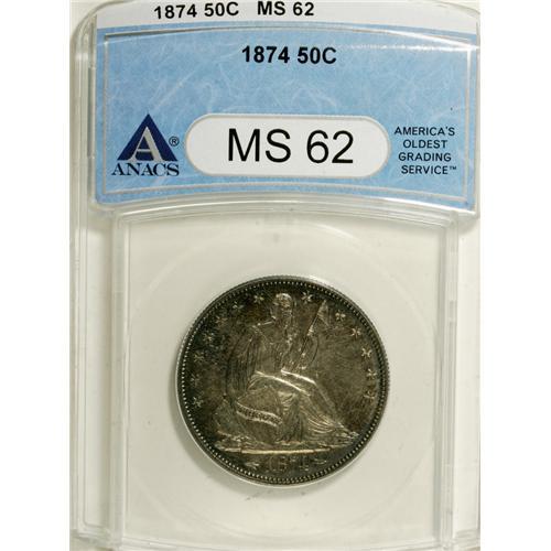 1874 50C Arrows MS62 ANACS. An appealing example that