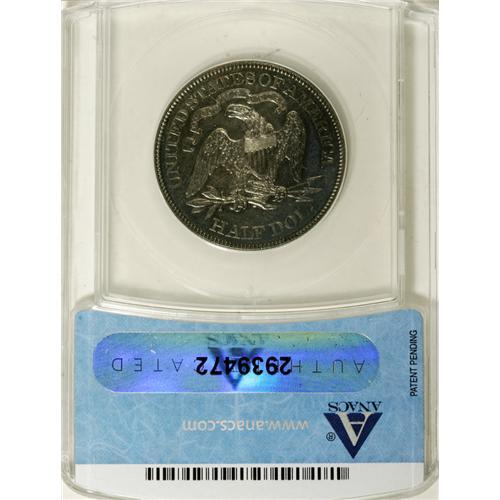 <B>1874 50C Arrows MS62 ANACS.</B></I> An appealing example that has attractive shades of blue, violet, and gray patina over each side. Solidly struck and highly lustrous with a few scattered abrasions that deny a higher grade.<BR><I>From The Lanterman's Mill Collection, Part Two.</B></I><BR><BR><b>Shipping:</b> Coins & Currency (<a target="_blank" href="http://www.heritageauctions.com/common/shipping.php">view shipping information</a>)