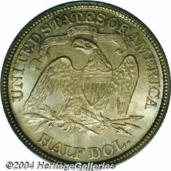 <table><tr><td><table><tr><td>1874 50C Arrows MS65 PCGS. A weight change during this and the preceding year brought back the Arrows at Date design from two decades earlier. The soft, multicolored toning that characterizes this coin tends to overpower the viewer's attention, making it easy for one to forget the full strike, clean surfaces, and scarcity of this highly collectible Arrows issue. Population: 14 in 65, 3 finer (2/04). <BR><BR><B>Important notice:</B> Heritage usually auctions material at the rate of 200-250 lots per hour. On some occasions eBay Live bid software or the Internet may not be able to keep up with the pace of the auction. We recommend placing a realistic absentee bid now as insurance to avoid disappointment. Occasionally the auctioneer may eliminate or reject an eBay Live bid, and the auctioneer may also reopen a lot after the close of the eBay live bidding (usually because we missed an audience bid), and may reject your bid even if it shows you as the winning bidder. By bidding via eBay Live, you agree that Heritage may award the lot to another bidder at its sole discretion under the circumstances described above or any other reasonable circumstances. Since eBay bids are not shown to us until we open the lot on the floor, we treat those bids just like floor bids. In most cases the floor responds before the eBay bid is presented to us, due to Internet lag time, so for consistency we have made it a policy that floor bids are always considered first over tie eBay live bids. Also please note that all Heritage lots purchased through eBay Live carry a 20% Buyer's Premium. Please make sure you read the Terms and Conditions before you bid. <BR><BR><B>IMPORTANT ANNOUNCEMENT ABOUT RESERVES:</B> Heritage now divulges all reserves on its web site 7 days before every auction. If you want to know whether the reserve on this lot has been met, and if not, what the reserve amount is, please visit this lot page on the HeritageCoin.com web site, or email: bid@HeritageGalleries.com </span></font></td></tr></table></td></tr></table>