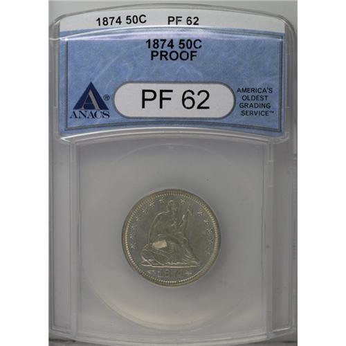 <B>1874<50C> Arrows PR62 ANACS.</B></I> Brilliant and untoned, with slight field-device contrast. Misidentified by ANACS as a half dollar, this Seated quarter is somewhat softly struck on the peripheral stars and on Liberty's foot and sandal, which along with some light field haze and small evidences of contact account for the grade. <BR><BR><B>Important notice