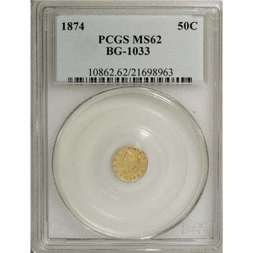 1874 50C Liberty Round 50 Cents, BG-1033, R.5, MS62