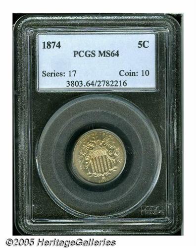 <B>1874<5C> MS64 PCGS.</B></I> The strike is particularly well executed and both sides are overlaid in light golden patina.<BR><I>From The Western Hills Collection.</B></I>