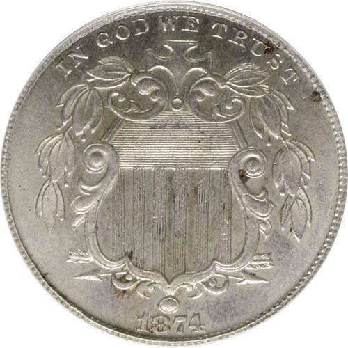 <B>1874 5C PR62 PCGS.</B></I> PCGS Population (17/276). NGC Census: (6/446). Mintage: 700. Numismedia Wsl. Price for NGC/PCGS coin in PR62: $200. (#3828)<BR><BR><b>Shipping:</b> Coins & Currency (<a target="_blank" href="http://www.heritageauctions.com/common/shipping.php">view shipping information</a>)