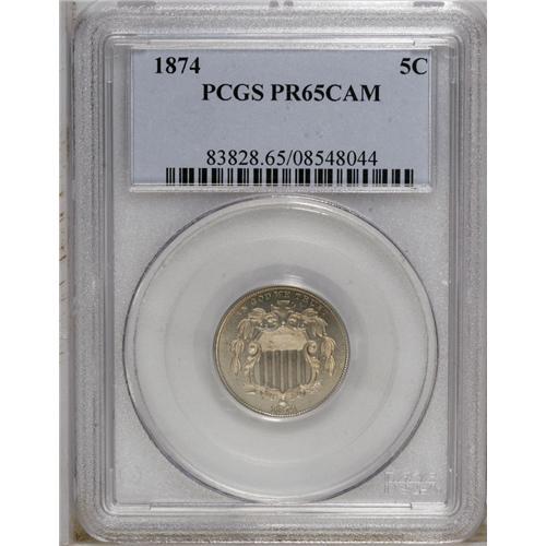 1874 5C PR65 Cameo PCGS. A lovely Gem that has pleasin