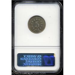 <table><tr><td><TABLE cellSpacing=0 cellPadding=0 width="100%" bgColor=#000000 border=0><TBODY> <TR><TD width="100%"><TABLE cellSpacing=1 cellPadding=3 width="100%" border=0><TBODY><TR><TD width="100%" bgColor=#79735c><FONT face=arial color=#ffffff size=3><B>Description</B> </FONT></TD></TR><TR><TD width="100%" bgColor=#ffffff><FONT face=arial size=2><B>1874 5C PR65 NGC.</B></I> Fletcher-4, URS-2. The 74 in the date is lightly repunched at the peak. Apple-green and lilac hues endow this nicely struck and carefully preserved Gem.<BR><I>From the Holman Family Collection.</B></I> </FONT></TD></TR></TBODY></TABLE></TD></TR></TBODY></TABLE><BR><A name=PricesRealized></A><TABLE cellSpacing=0 cellPadding=0 width="100%" bgColor=#000000 border=0><TBODY><TR><TD width="100%"><TABLE cellSpacing=1 cellPadding=3 width="100%" border=0><TBODY><TR><TD width="100%" bgColor=#79735c><A name=PR><FONT face=arial color=#ffffff size=3><B>Previous Prices from Heritage Auctions</B> </FONT></A></TD></TR><TR><TD bgColor=#f6f6ed><TABLE cellSpacing=0 cellPadding=0 width="100%" border=1><TBODY><TR><TD align=middle width="33%"><B>Date</B></TD><TD align=middle width="33%"><B>Service</B></TD><TD align=middle width="33%"><B>Price</B></TD></TR><TR bgColor=whitesmoke><TD width="33%"><B>07/01/2003</B></TD><TD width="33%">PCGS</TD><TD width="33%">$747.50</TD></TR><TR bgColor=whitesmoke><TD width="33%"><B>02/04/2003</B></TD><TD width="33%">PCGS</TD><TD width="33%">$718.75</TD></TR><TR bgColor=whitesmoke><TD width="33%"><B>09/11/2001</B></TD><TD width="33%">NGC</TD><TD width="33%">$675.00</TD></TR><TR bgColor=whitesmoke><TD width="33%"><B>10/10/2000</B></TD><TD width="33%">NGC</TD><TD width="33%">$650.00</TD></TR><TR bgColor=whitesmoke><TD width="33%"><B>11/30/1999</B></TD><TD width="33%">NGC</TD><TD width="33%">$825.00</TD></TR><TR bgColor=whitesmoke><TD width="33%"><B>11/23/2002</B></TD><TD width="33%">PCGS</TD><TD width="33%">$241.50</TD></TR><TR bgColor=whitesmoke><TD width="33%"><B>11/23/2002</B></TD><TD width="33%">PCGS</TD><TD width="33%">$833.75</TD></TR><TR bgColor=whitesmoke><TD width="33%"><B>09/28/2002</B></TD><TD width="33%">NGC</TD><TD width="33%">$862.50</TD></TR><TR bgColor=whitesmoke><TD width="33%"><B>04/28/2002</B></TD><TD width="33%">NGC</TD><TD width="33%">$471.50</TD></TR><TR bgColor=whitesmoke><TD width="33%"><B>04/27/2002</B></TD><TD width="33%">PCGS</TD><TD width="33%">$920.00</TD></TR><TR bgColor=whitesmoke><TD width="33%"><B>02/23/2002</B></TD><TD width="33%">PCGS</TD><TD width="33%">$805.00</TD></TR><TR bgColor=whitesmoke><TD width="33%"><B>10/06/2001</B></TD><TD width="33%">PCGS</TD><TD width="33%">$552.00</TD></TR><TR bgColor=whitesmoke><TD width="33%"><B>02/24/2001</B></TD><TD width="33%">PCGS</TD><TD width="33%">$632.50</TD></TR><TR bgColor=whitesmoke><TD width="33%"><B>11/17/2000</B></TD><TD width="33%">PCGS</TD><TD width="33%">$575.00</TD></TR><TR bgColor=whitesmoke><TD width="33%"><B>10/06/2000</B></TD><TD width="33%">NGC</TD><TD width="33%">$661.25</TD></TR><TR bgColor=whitesmoke><TD width="33%"><B>04/14/2000</B></TD><TD width="33%">PCGS</TD><TD width="33%">$690.00</TD></TR><TR bgColor=whitesmoke><TD width="33%"><B>10/10/1999</B></TD><TD width="33%">NGC</TD><TD width="33%">$621.00</TD></TR><TR bgColor=whitesmoke><TD width="33%"><B>04/23/1999</B></TD><TD width="33%">NGC</TD><TD width="33%">$718.75</TD></TR><TR bgColor=whitesmoke><TD width="33%"><B>01/09/1999</B></TD><TD width="33%">NGC</TD><TD width="33%">$605.00</TD></TR><TR bgColor=whitesmoke><TD width="33%"><B>09/13/1997</B></TD><TD width="33%">PCGS</TD><TD width="33%">$690.00</TD></TR><TR bgColor=whitesmoke><TD width="33%"><B>04/11/1997</B></TD><TD width="33%">NGC</TD><TD width="33%">$632.50</TD></TR><TR bgColor=whitesmoke><TD width="33%"><B>08/13/1996</B></TD><TD width="33%">NGC</TD><TD width="33%">$1,100.00</TD></TR><TR bgColor=whitesmoke><TD width="33%"><B>10/07/1995</B></TD><TD width="33%">NGC</TD><TD width="33%">$550.00</TD></TR><TR bgColor=whitesmoke><TD width="33%"><B>10/02/2000</B></TD><TD width="33%">PCGS</TD><TD width="33%">$776.00</TD></TR></TBODY></TABLE></TD></TR><TR><TD bgColor=#ffffff><FONT face=arial size=1 ?>PLEASE NOTE: All prices realized reflect the final hammer price PLUS the buyer's premium in auctions that charge a buyer's premium. Each item has a notation at the top of the listing indicating whether that lot included a buyer's premium. Example: A item that sells with a final hammer price of $100 and a 20% buyer's premium will display with a price realized of $120. All information listed is intended to be as accurate as possible, but errors are possible. Please use this guide carefully and inform us of any inaccuracies. </FONT></TD></TR></TBODY></TABLE></TD></TR></TBODY></TABLE><BR><TABLE cellSpacing=0 cellPadding=0 width="100%" bgColor=#000000 border=0><TBODY><TR><TD width="100%"><TABLE cellSpacing=1 cellPadding=3 width="100%" border=0><TBODY><TR><TD width="100%" bgColor=#79735c colSpan=6><FONT face=arial color=#ffffff size=3><B>Price Guide*</B> </FONT></TD></TR><TR bgColor=#f6f6ed><TD align=middle><B>Grade</B> </TD><TD align=middle><B>Coin World<BR>(Trends)</B> </TD><TD align=middle><B>Numismedia<BR>Retail</B> </TD><TD align=middle><B>Numismedia<BR>Wholesale</B> </TD><TD align=middle><B>Coin<BR>Universe</B> </TD><TD align=middle><B>Heritage<BR>Value Index</B> </TD></TR><TR bgColor=#ffffff><TD align=middle>64</TD><TD align=right>---</TD><TD align=right>$515.00</TD><TD align=right>$412.00</TD><TD align=right>$365.00</TD><TD align=right>$337.50</TD></TR><TR style="FONT-WEIGHT: bold" bgColor=#cccfdd><TD align=middle>65</TD><TD align=right>---</TD><TD align=right>$940.00</TD><TD align=right>$755.00</TD><TD align=right>$1,125.00</TD><TD align=right>$696.67</TD></TR><TR bgColor=#ffffff><TD align=middle>66</TD><TD align=right>---</TD><TD align=right>---</TD><TD align=right>$950.00</TD><TD align=right>$1,575.00</TD><TD align=right>$951.25</TD></TR><TR bgColor=#ffffff><TD colSpan=6><FONT size=1>*All information listed is int