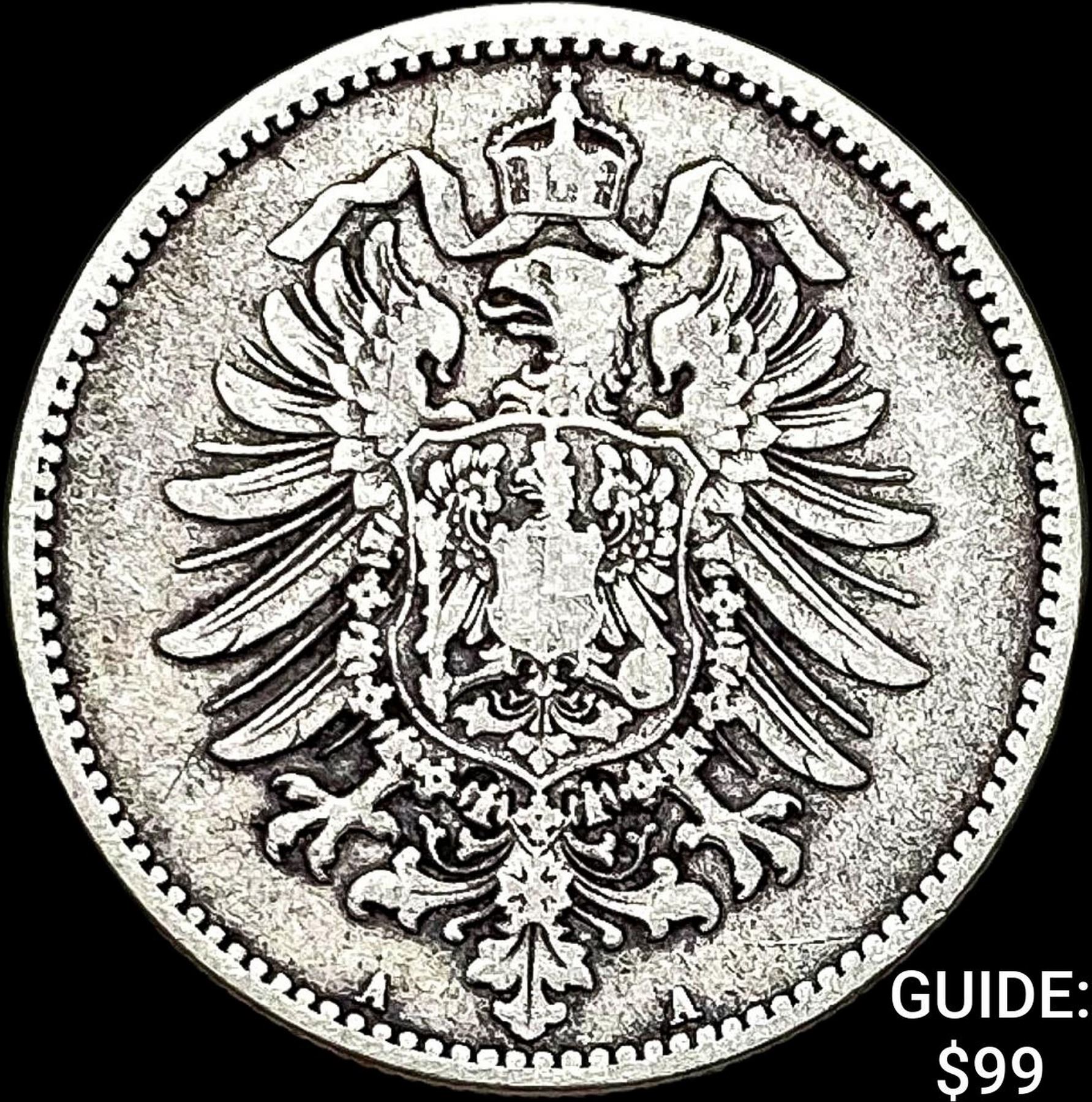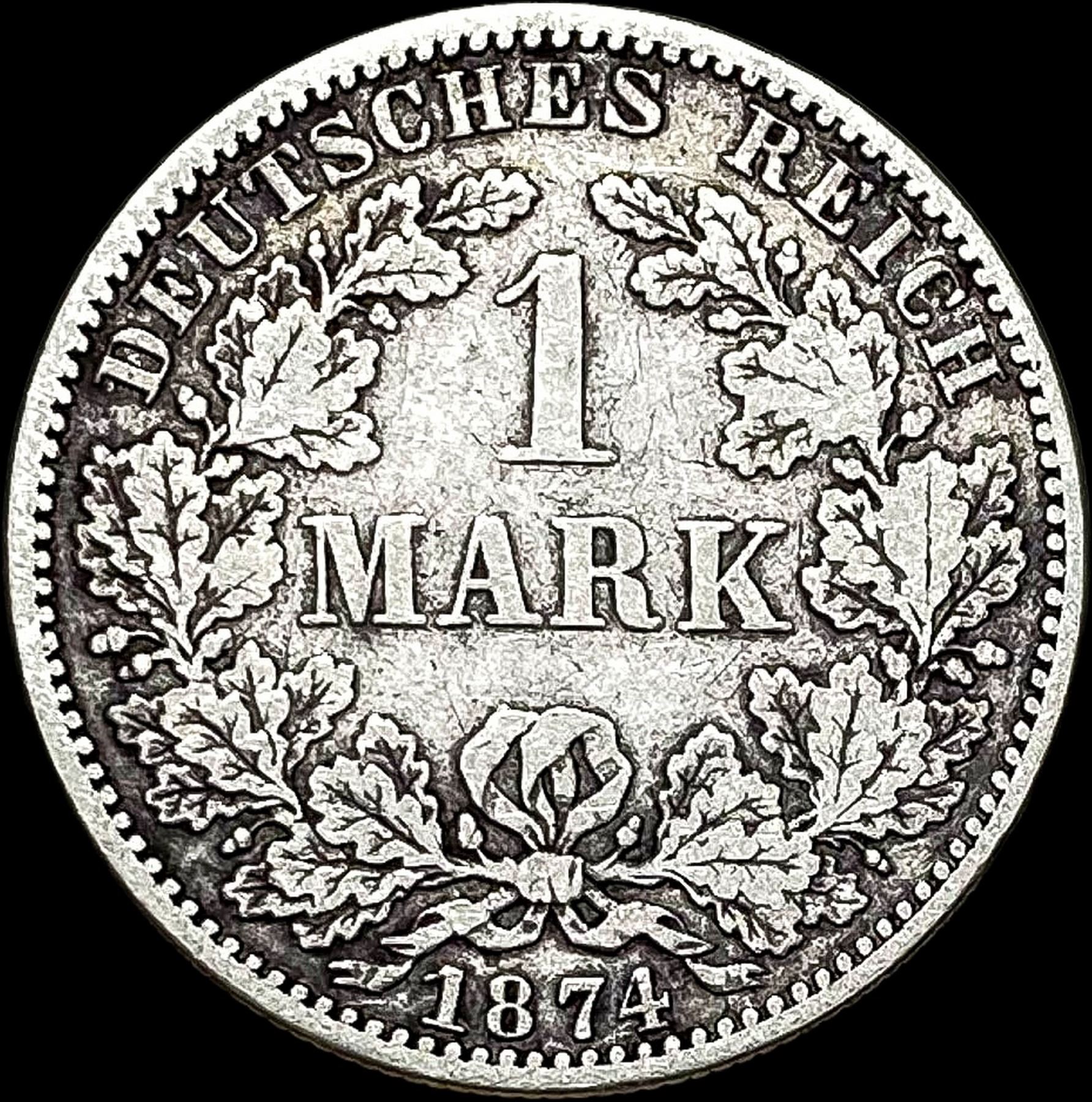 1874-A Germany SIlver 1 Reichsmark NEARLY UNCIRCULATED