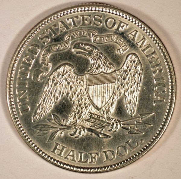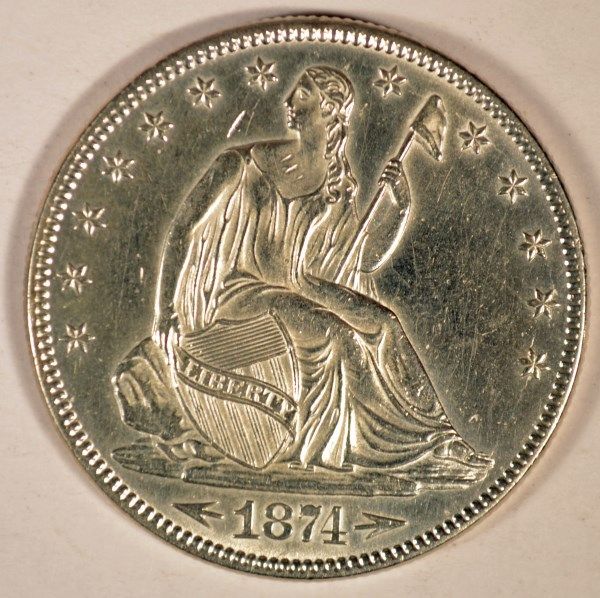 1874 ARROWS HALF DOLLAR, MS-64 WHITE, A SCARCE AND VERY NICE TYPE COIN