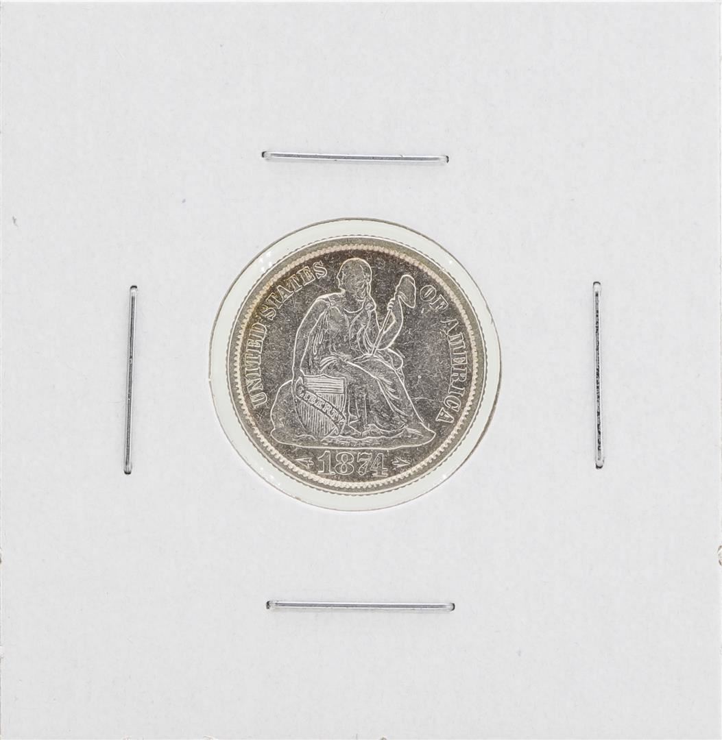 One 1874 Arrows Seated Dime Coin.