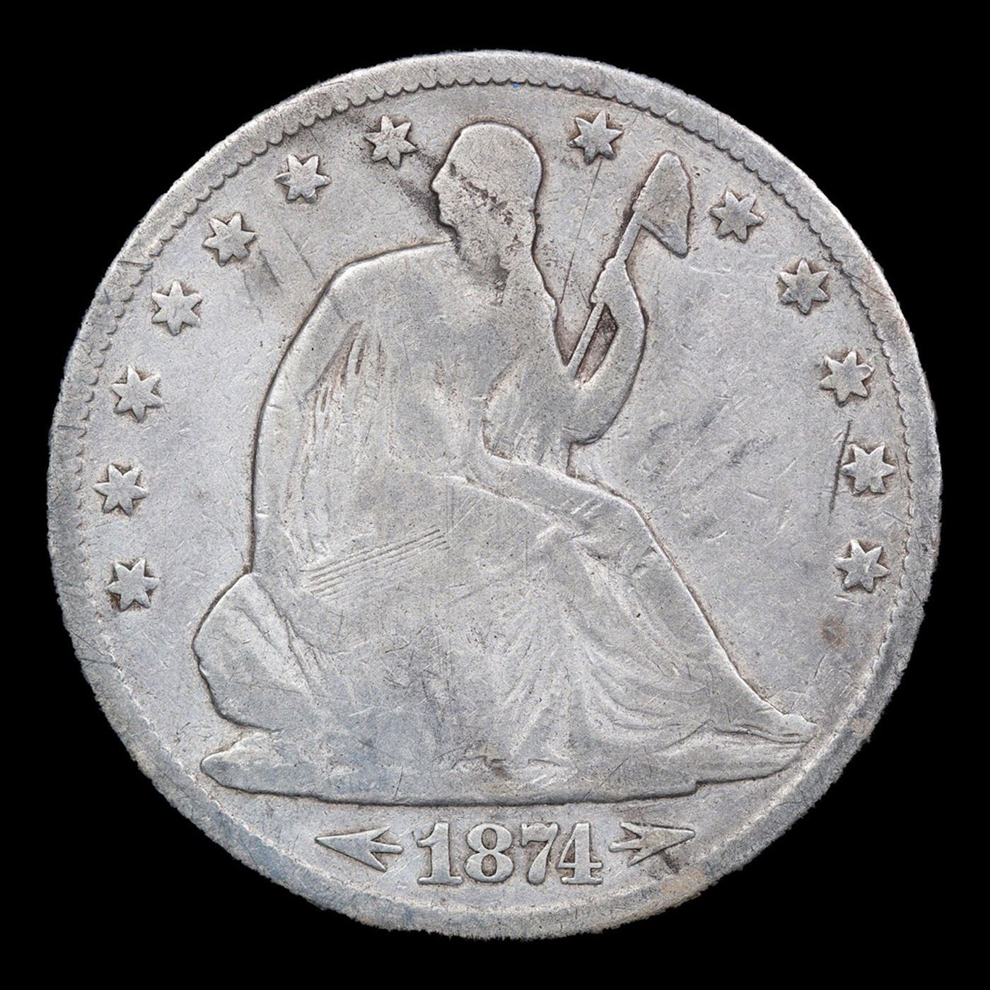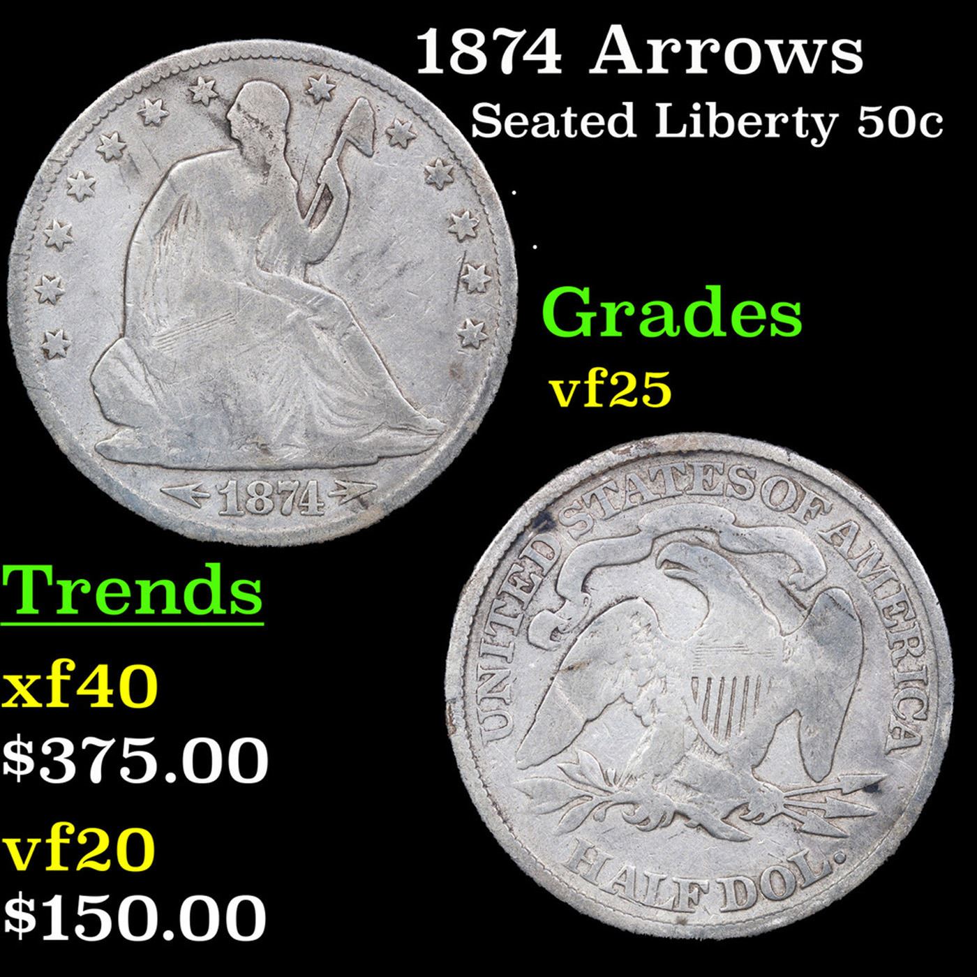 1874 Arrows Seated Half Dollar 50c Grades vf+.
