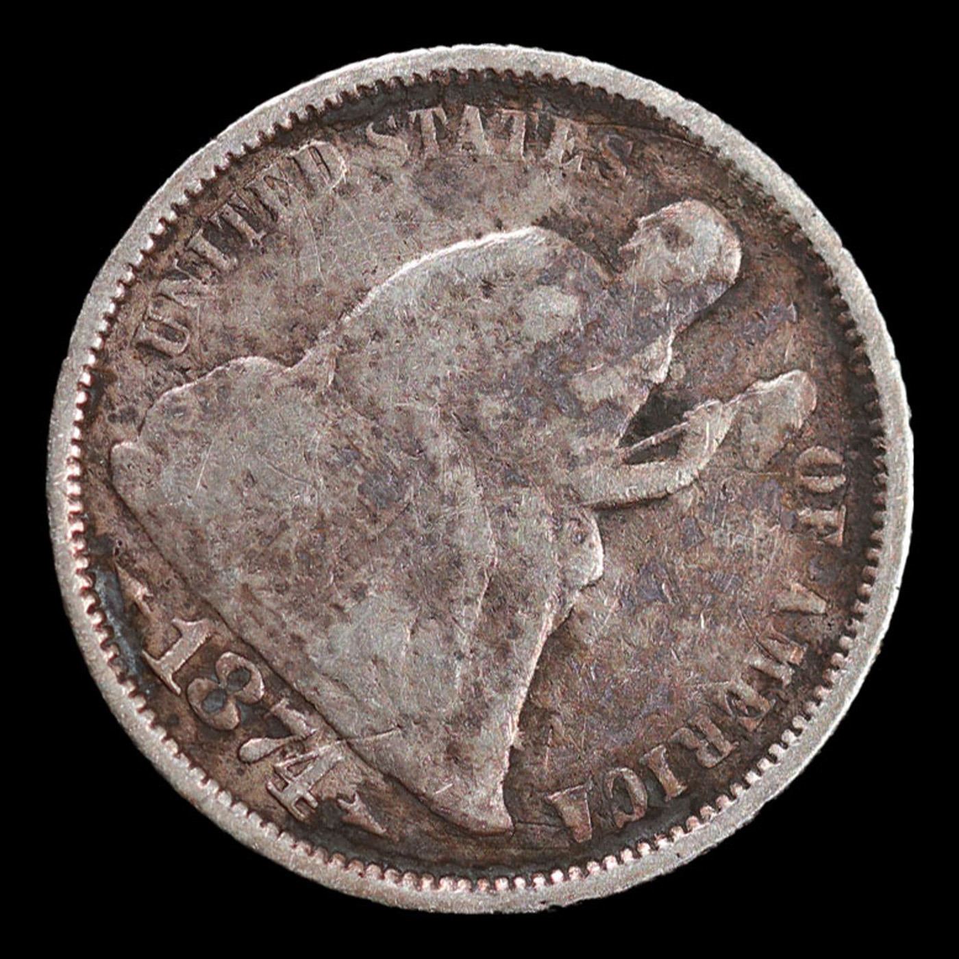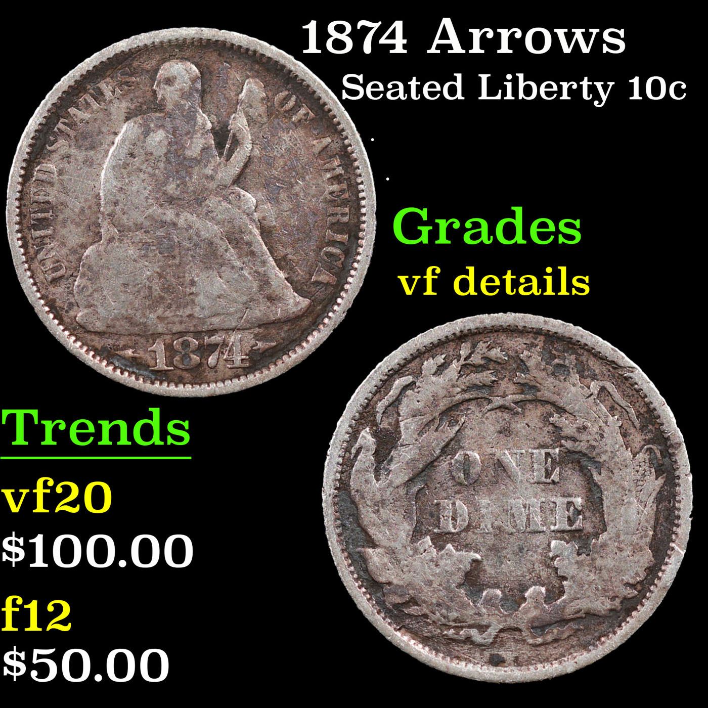 1874 Arrows Seated Liberty Dime 10c Grades vf details.