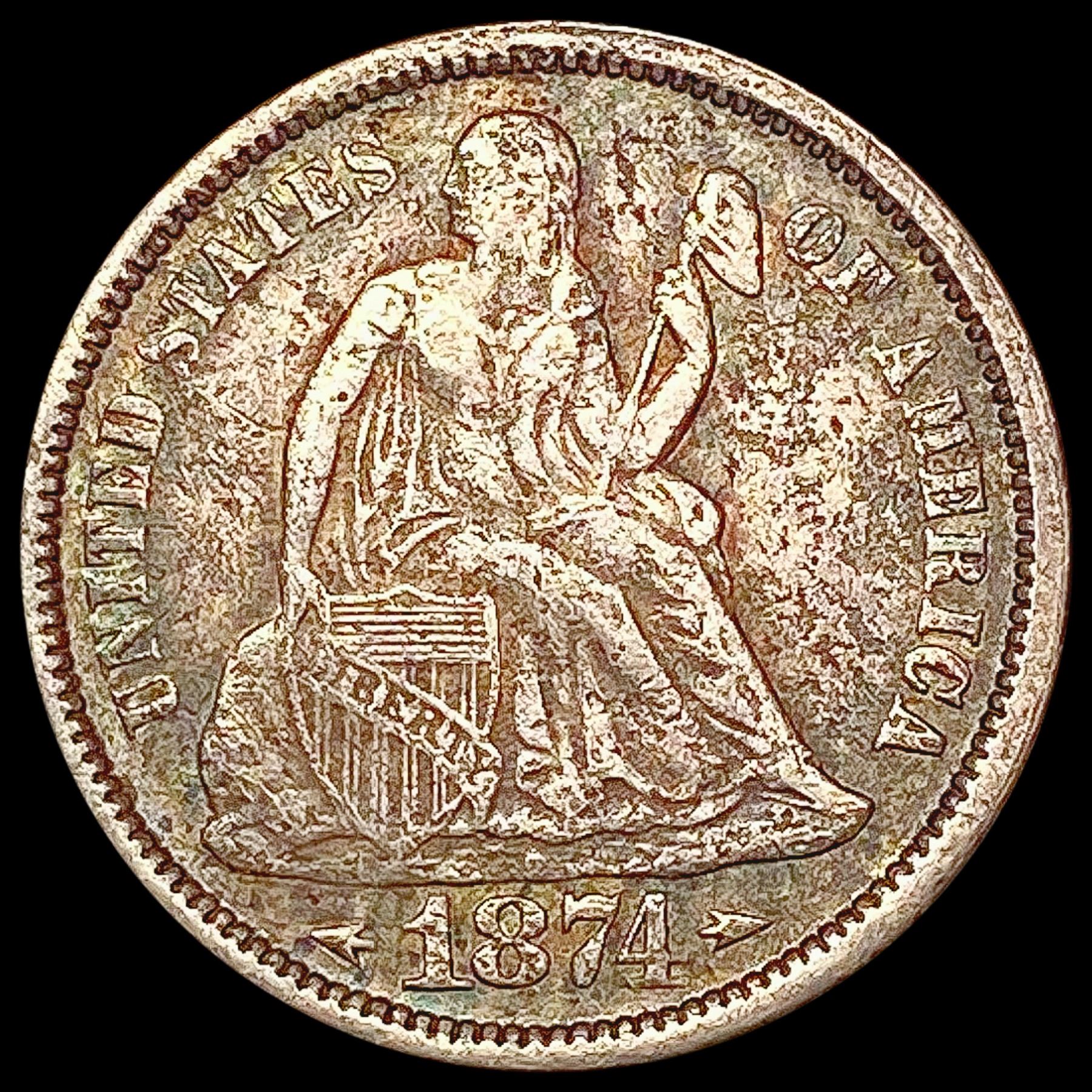 1874 Arrows Seated Liberty Dime NICELY CIRCULATED
